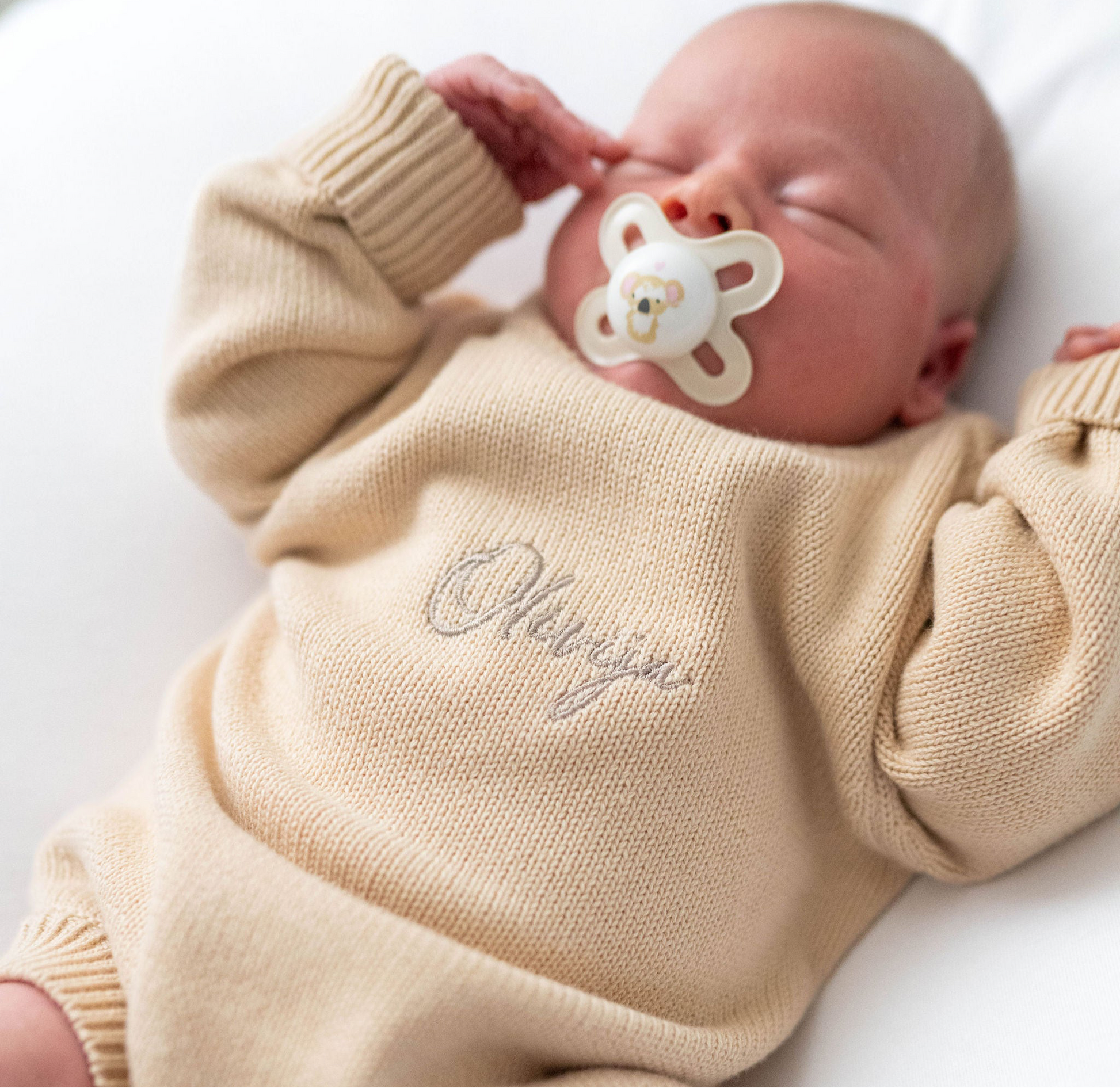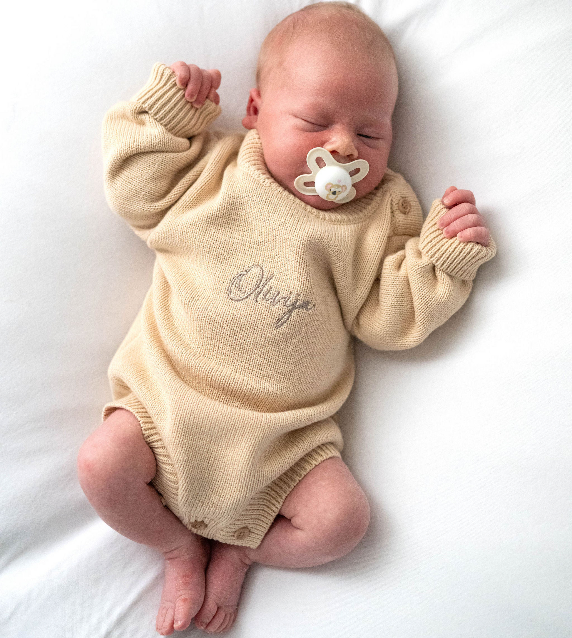Romper je poseben tudi zaradi personaliziranega vezenja imena otroka.