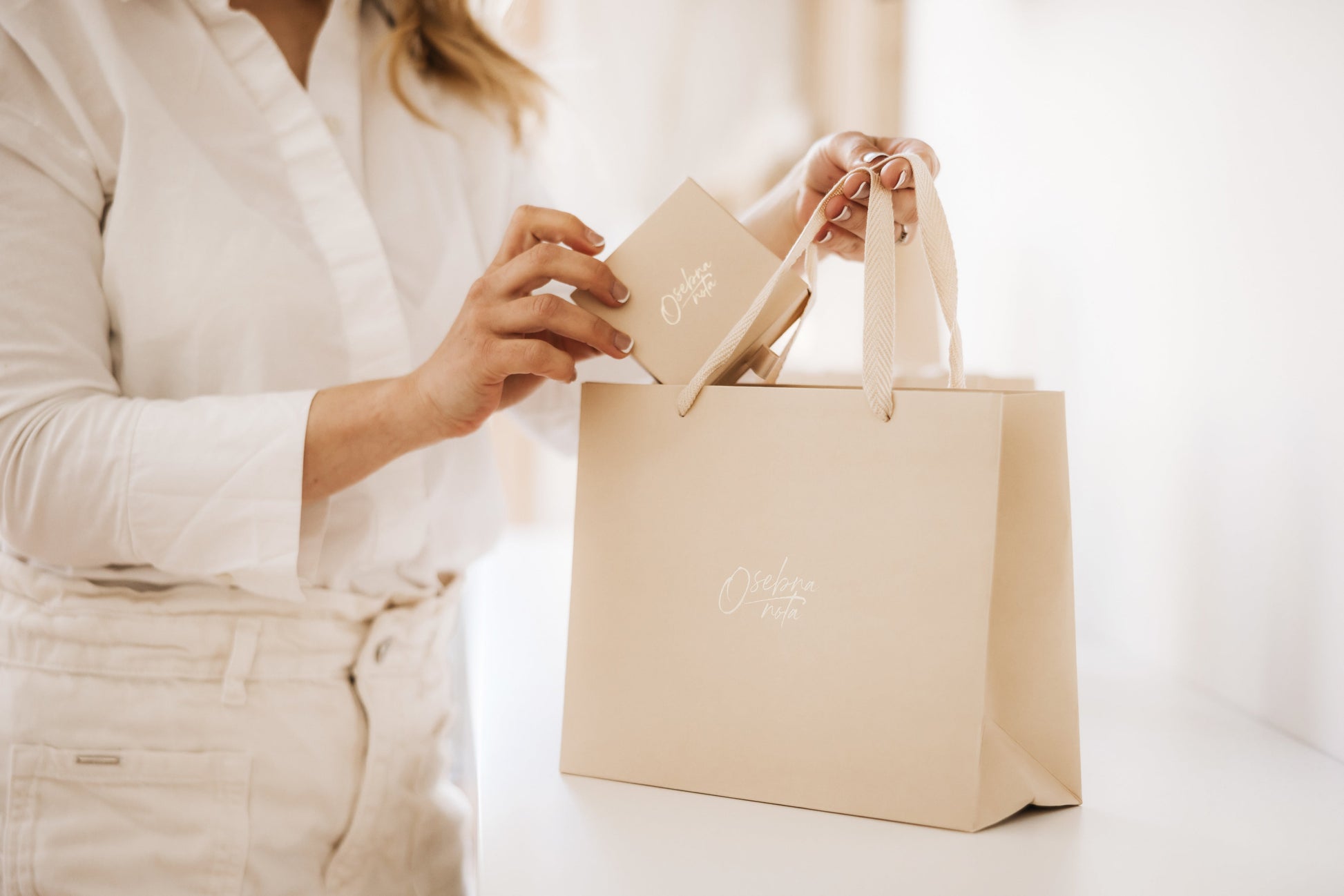 Da bo vaše darilce resnično popoln paket, zapakirajte izbrane izdelke v lično in elegantno darilno vrečko Osebna nota.