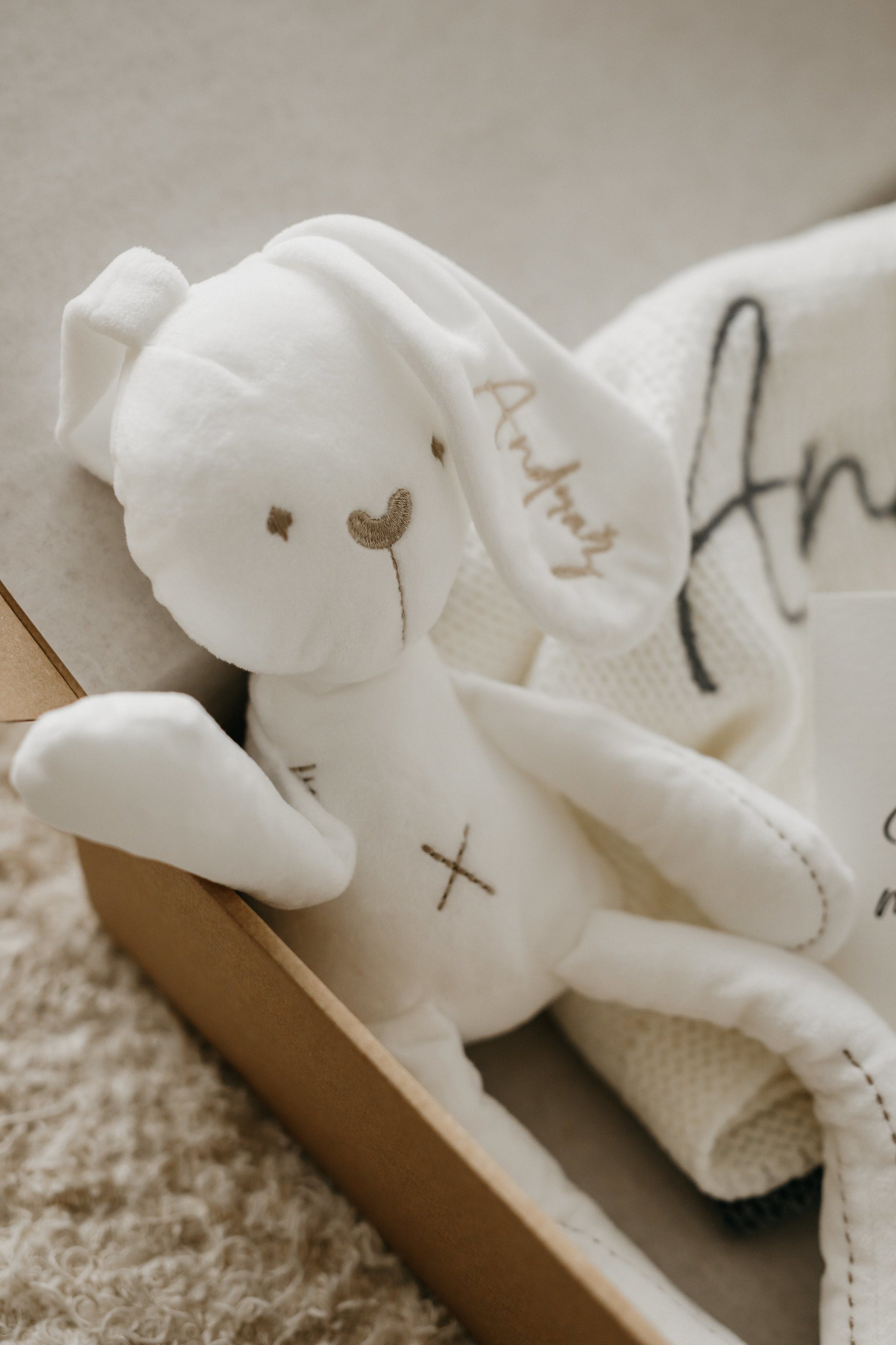 - plišastega zajčka dolgouhca z izvezenim imenom otroka