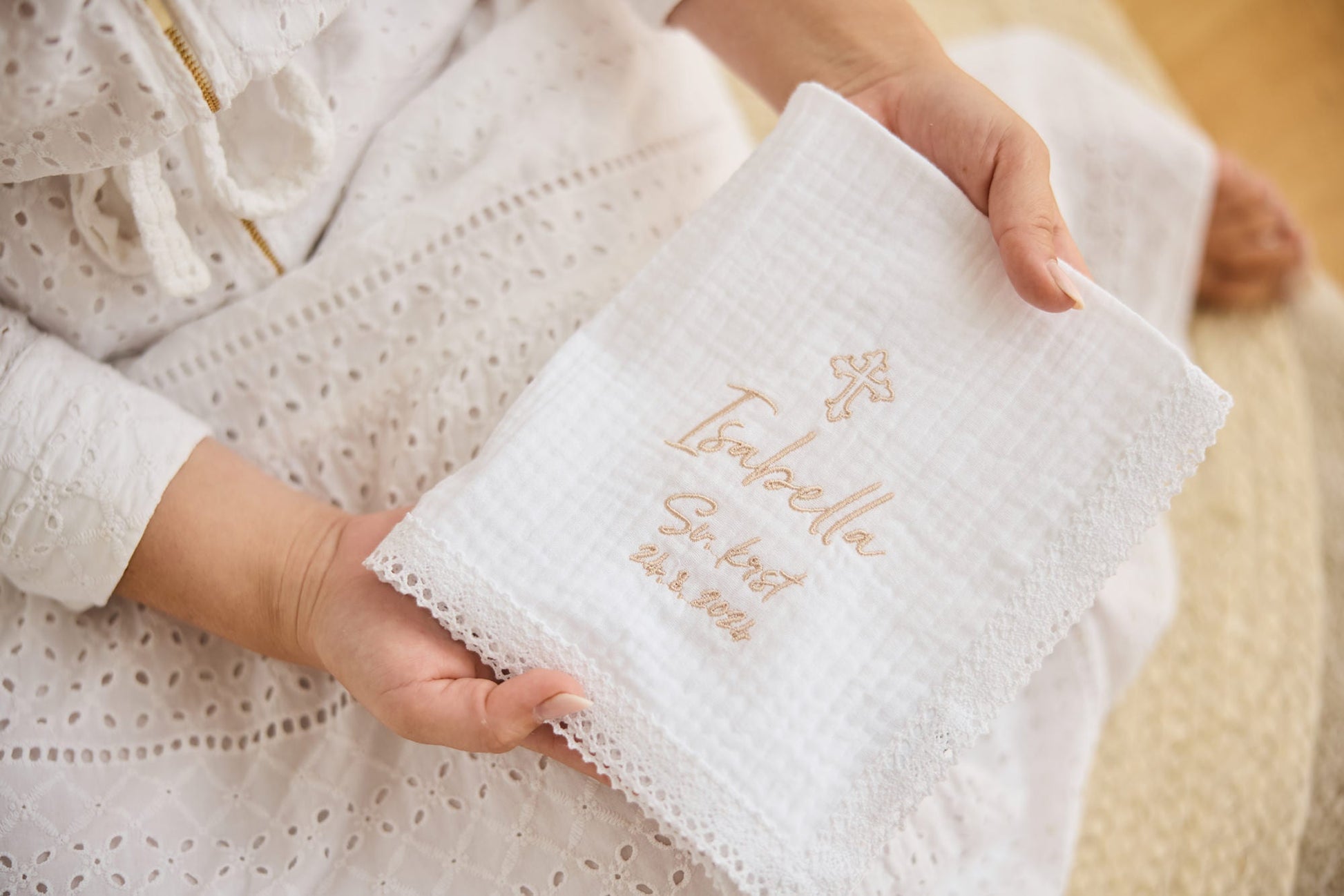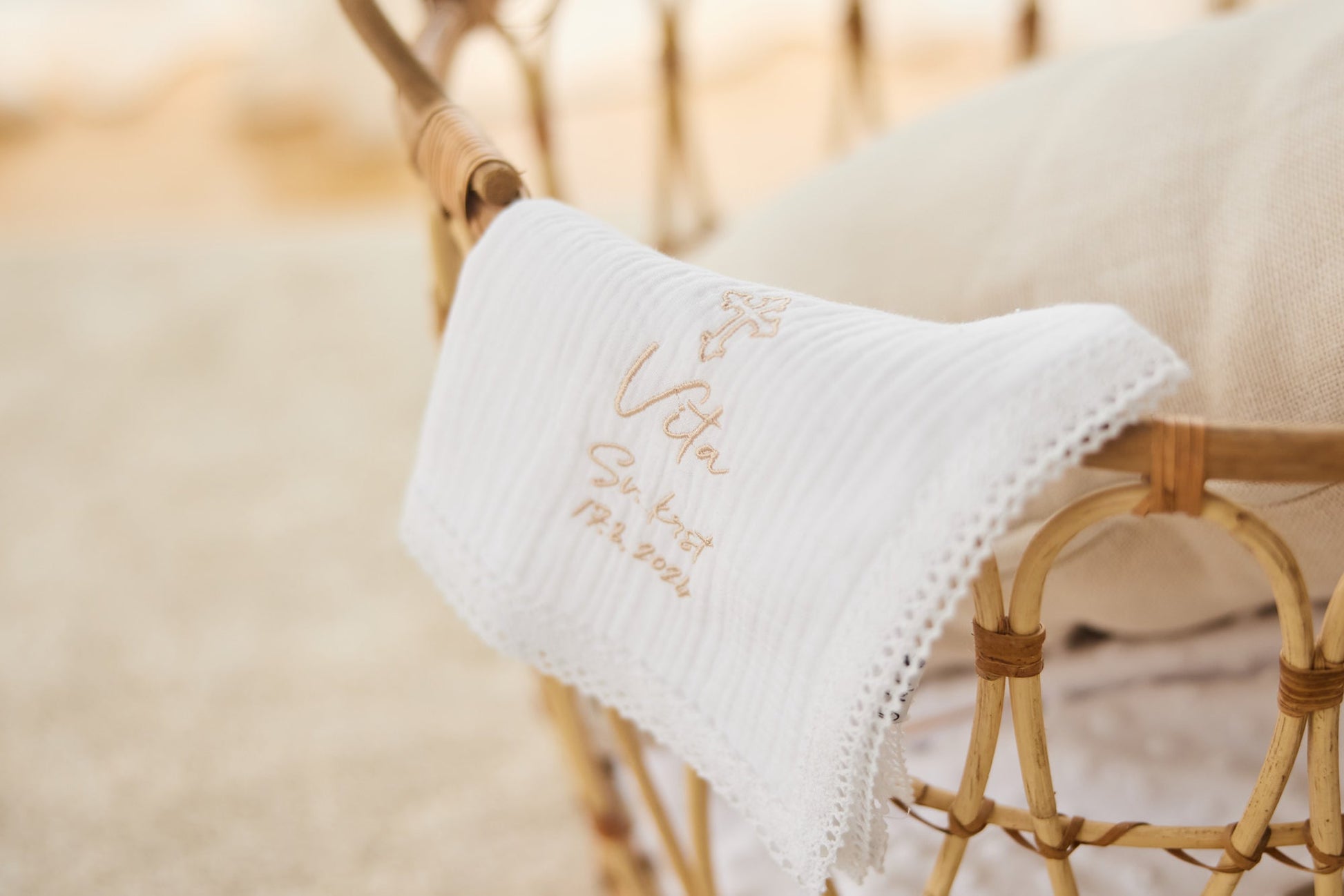 Dodatek pri prejemu Svetega krsta in večen spomin na krst je nedvomno krstni prtiček, ki ga za vas personaliziramo, mu dodamo vezenino križa in datum vašega dogodka.