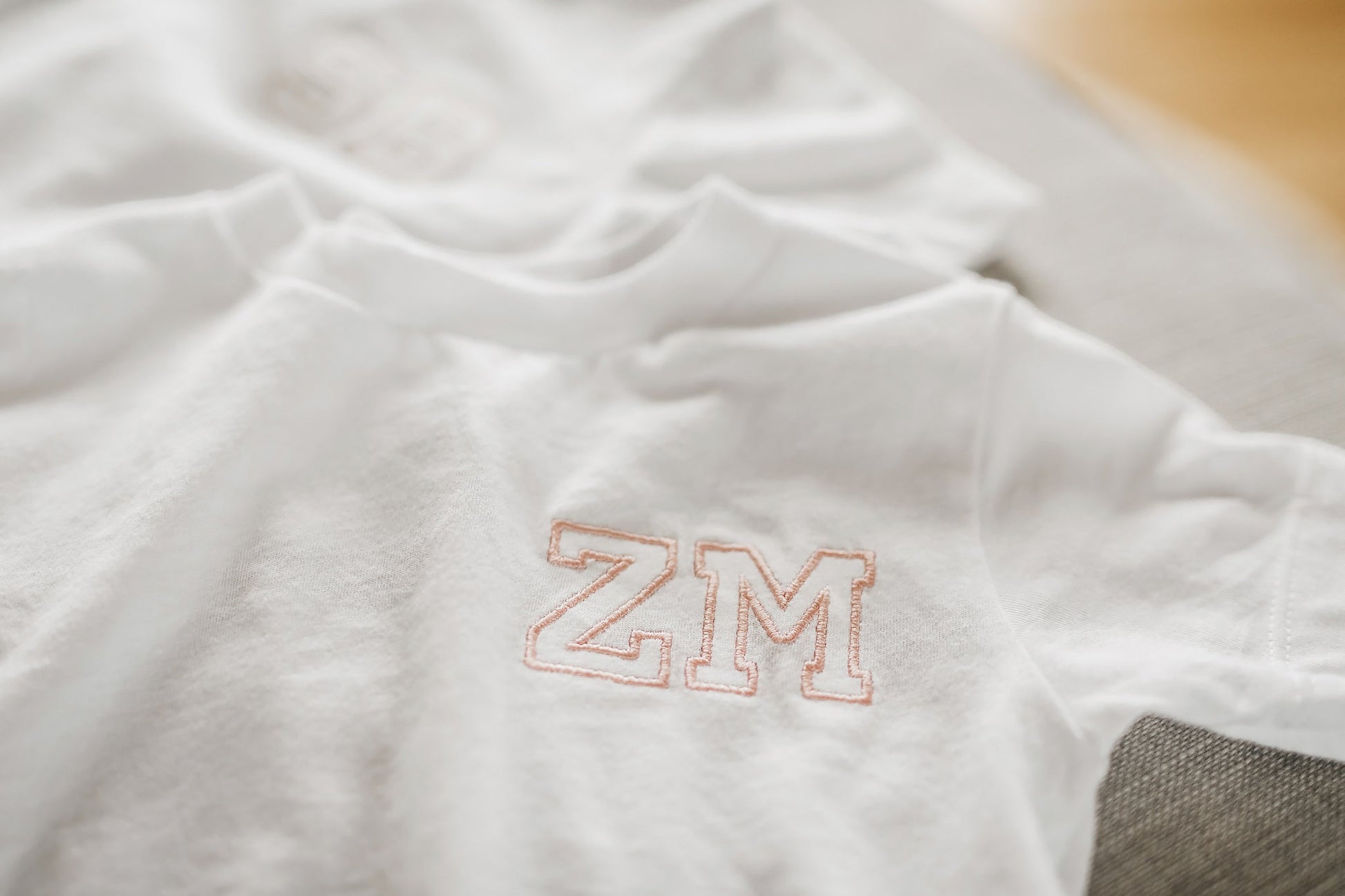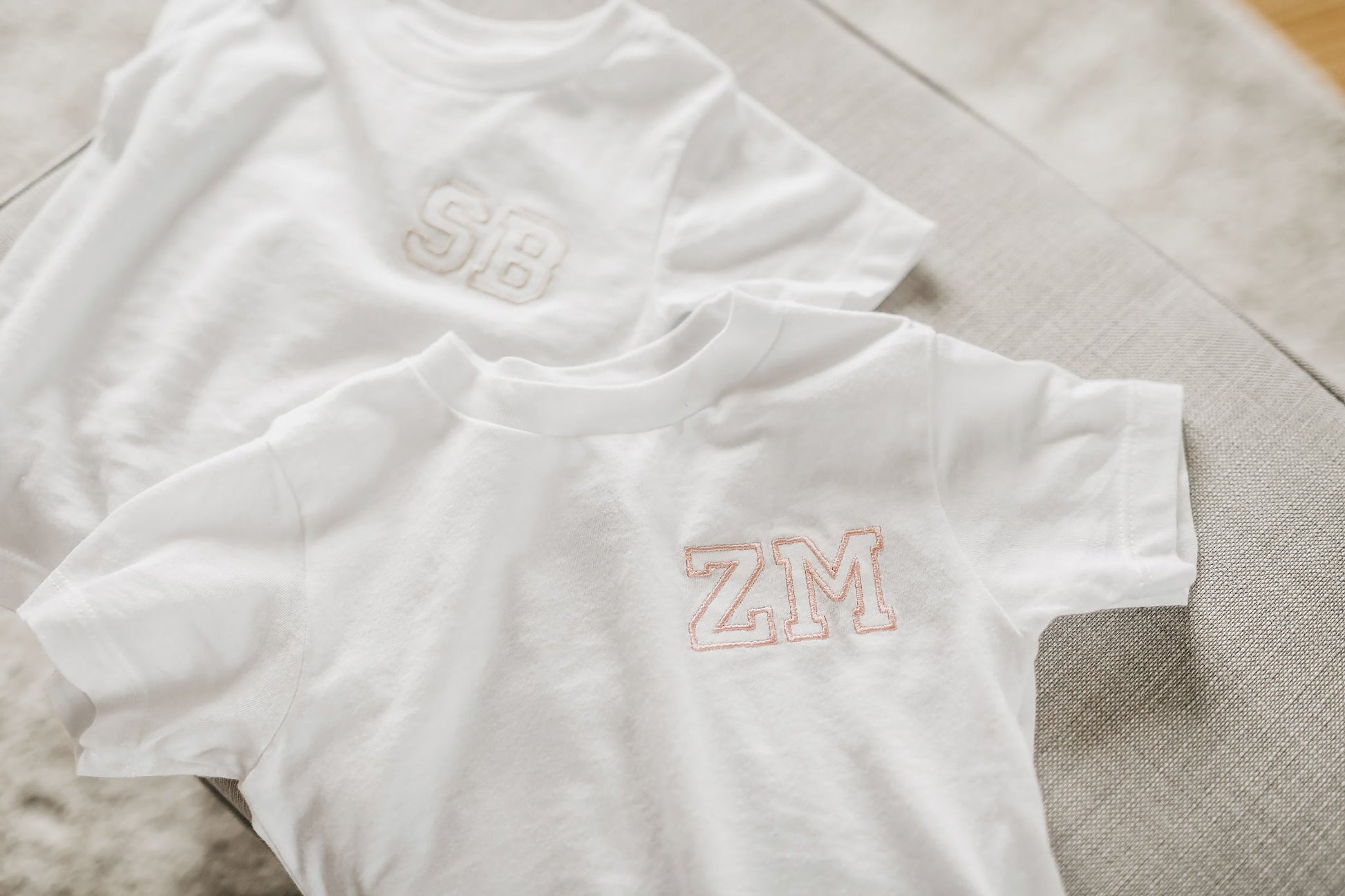 Izvezene črke so na voljo v sivi, bež, roza ali modri barvi.