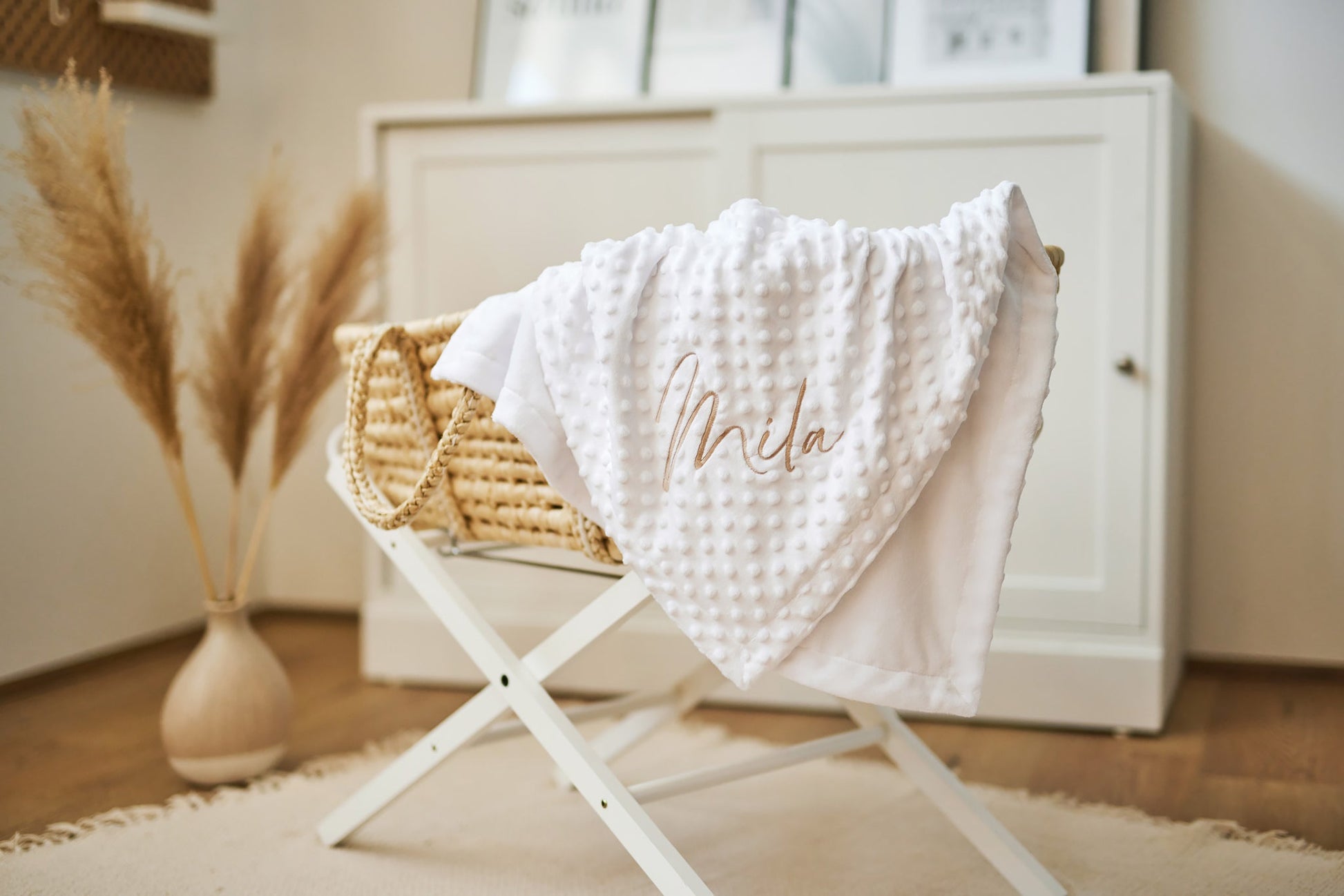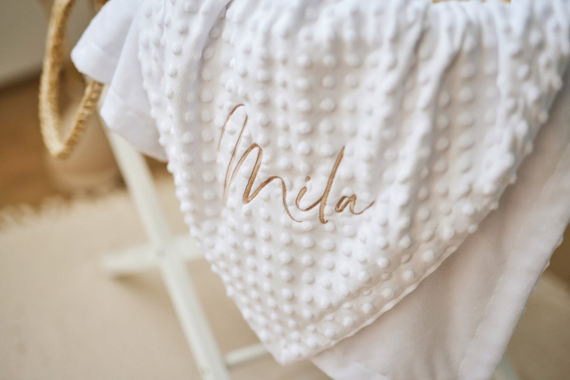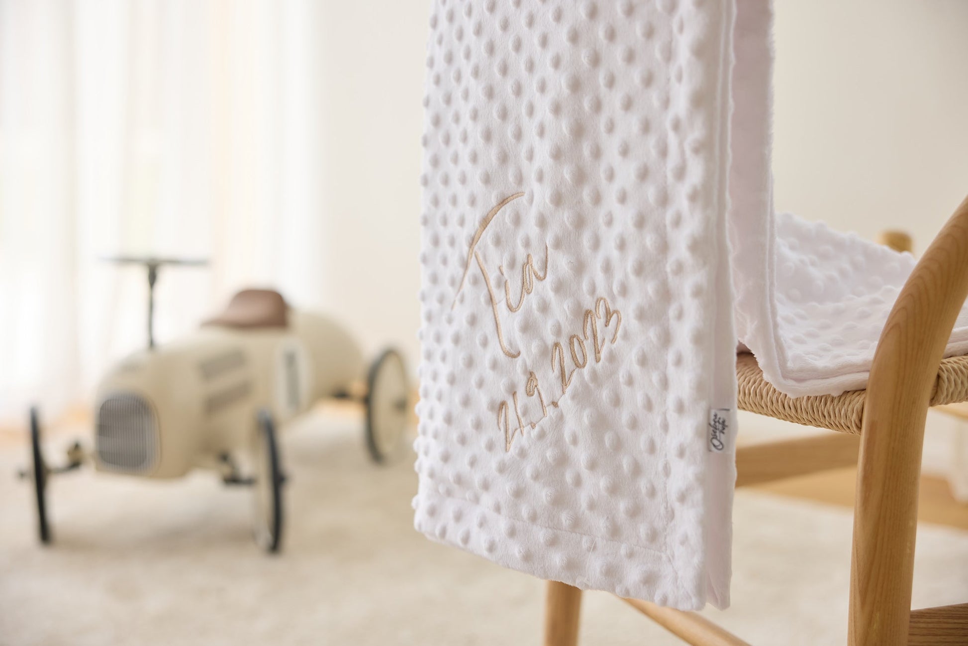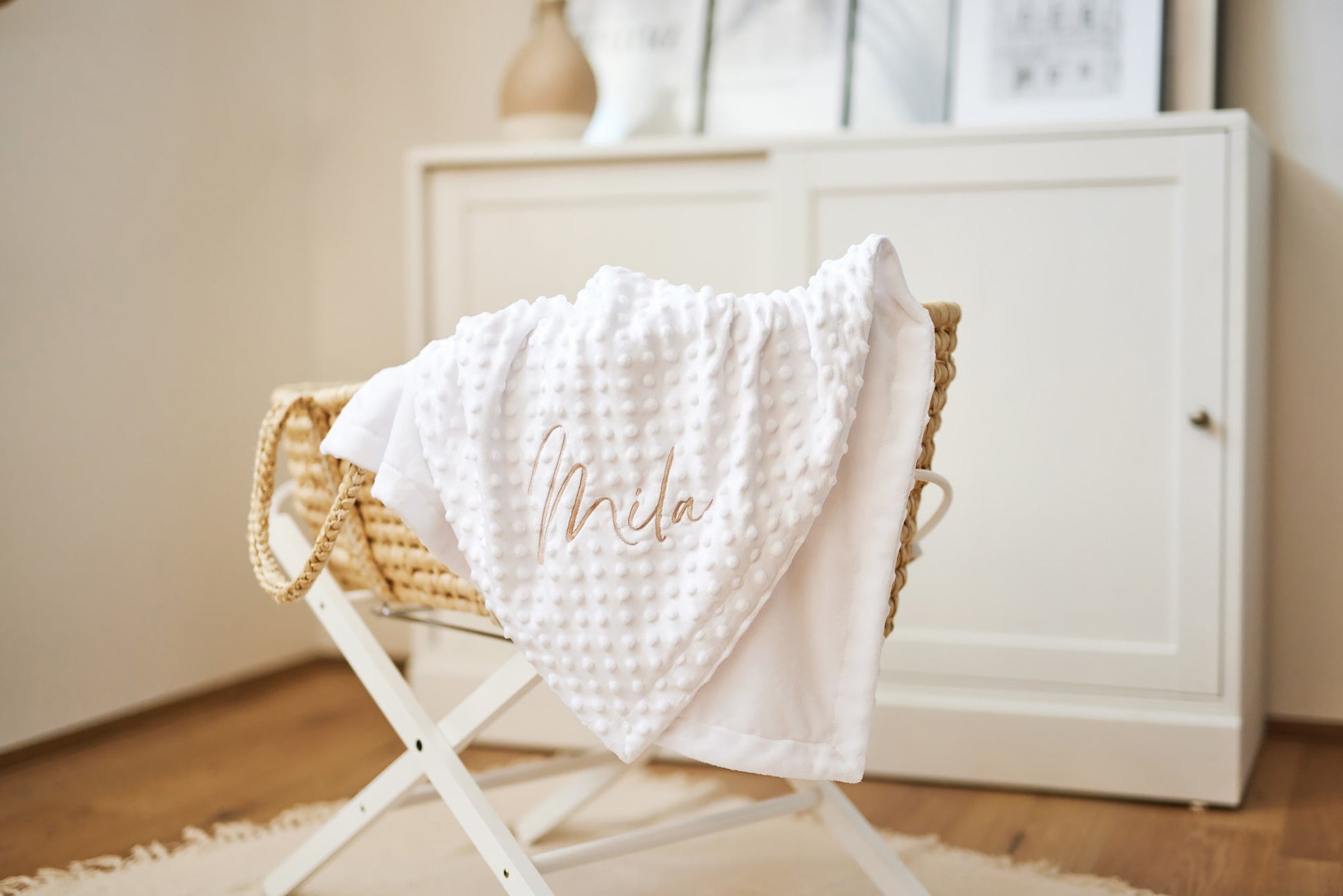 Neverjetno mehka odejica, narejena iz minky (prožne mehke kosmatene) tkanine. Idealna za sprehode v vozičku v prehodnih letnih časih, da bo dojenčku prijetno in toplo.