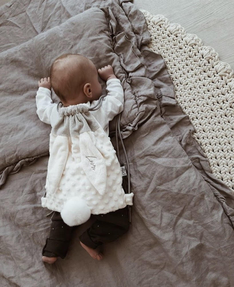 Najmehkejši in najbolj prikupen nahrbnik v obliki zajčka z mehkim repkom, ki bo zvesti malčkov prijatelj ob odhodu v vrtec ali na izlet.