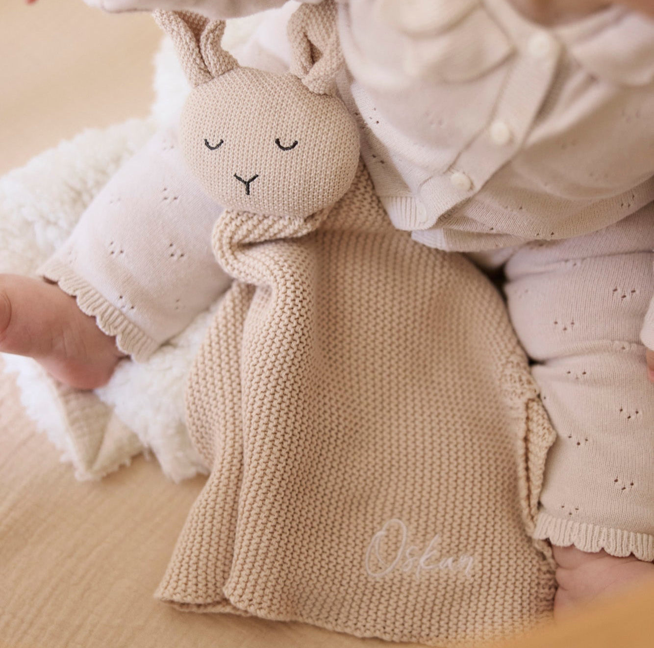 Izjemno mehka ninica - pleteni zajček, ki bo vašemu malčku delala družbo, mu omogočala lažji prehod iz dneva v noč in ga božala kot mamina dlan.