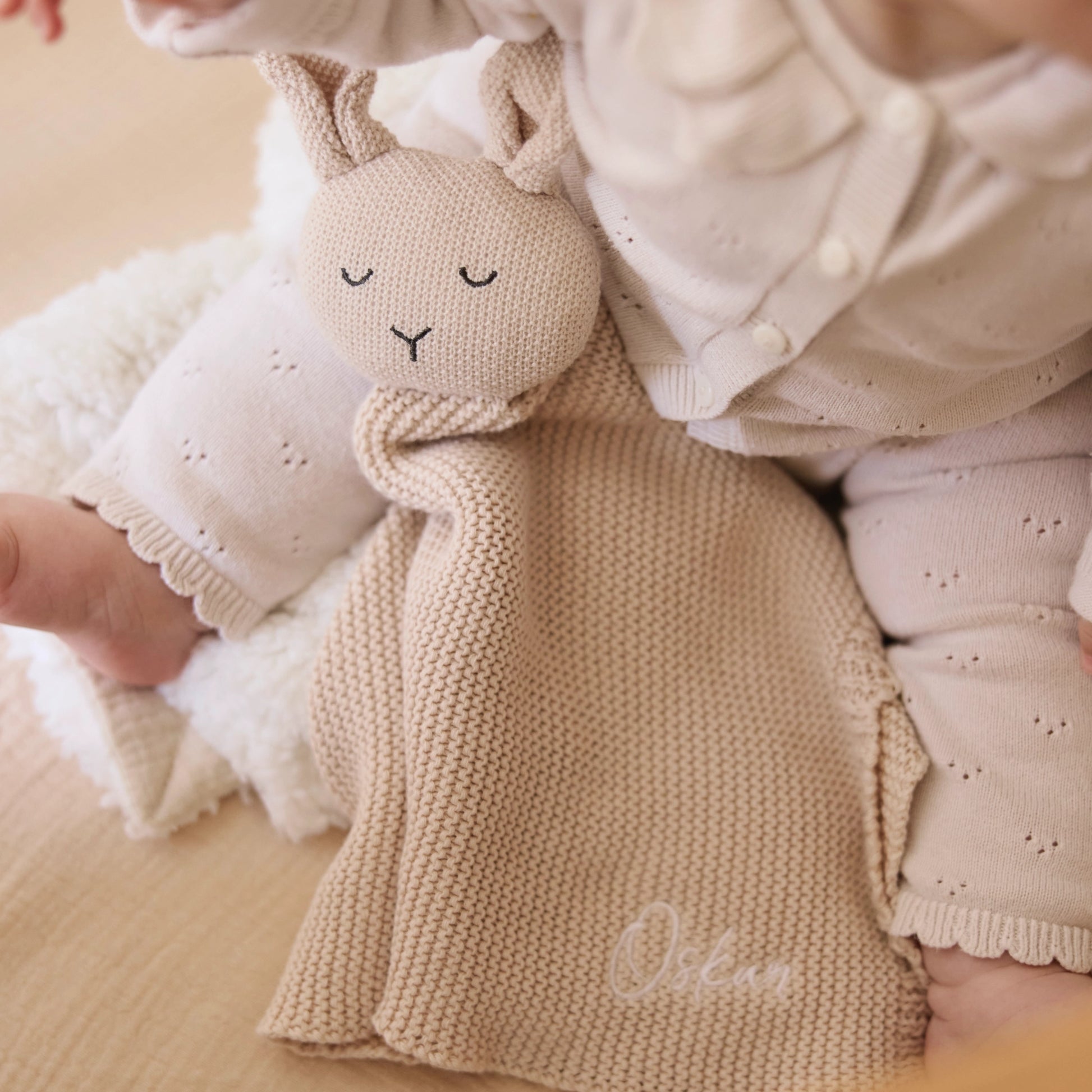 Izjemno mehka ninica - pleteni zajček, ki bo vašemu malčku delala družbo, mu omogočala lažji prehod iz dneva v noč in ga božala kot mamina dlan.