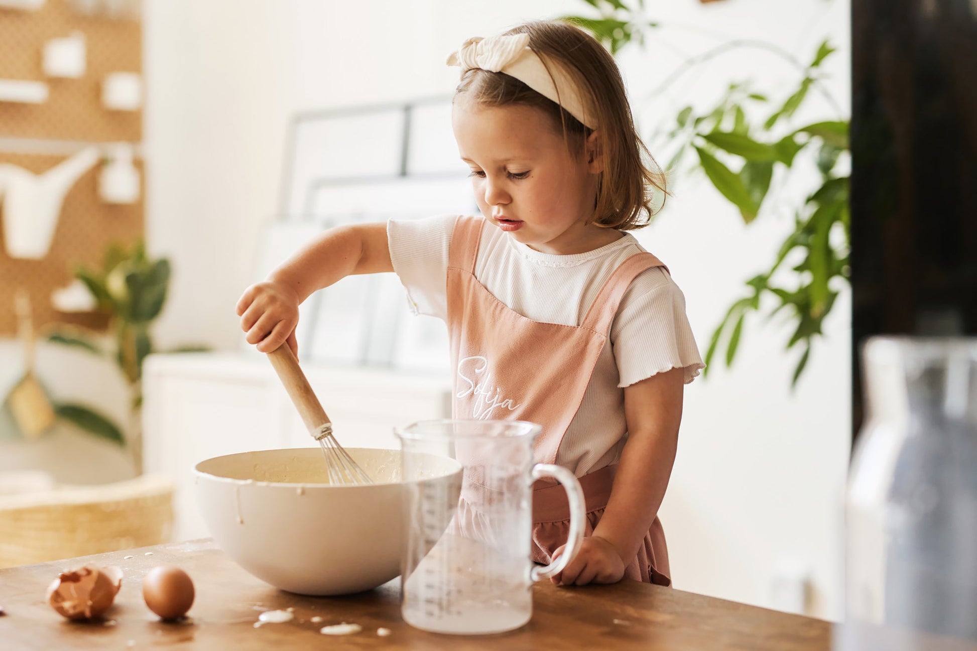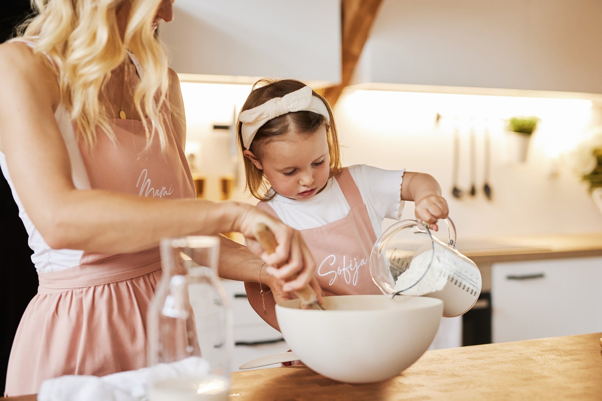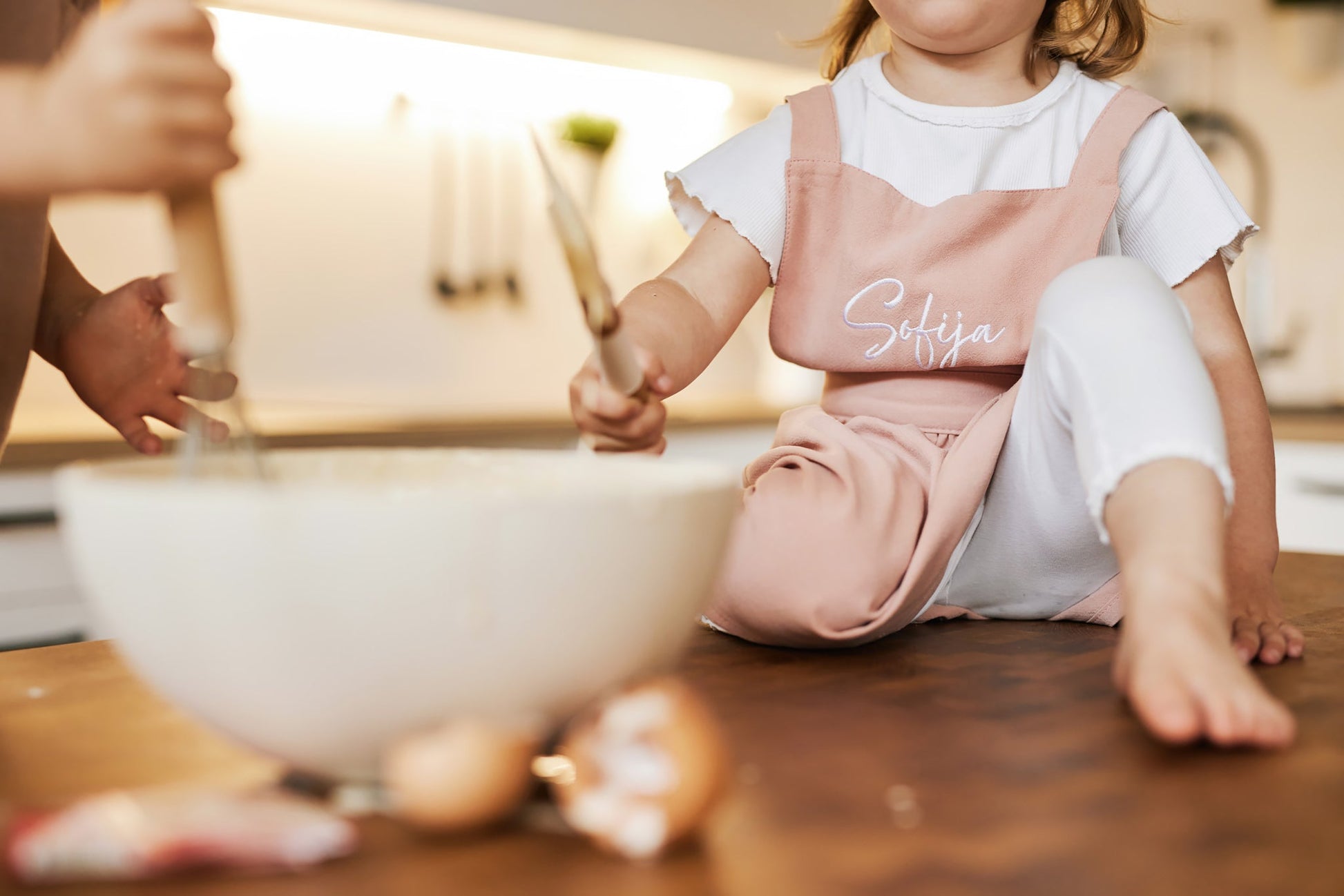 Če vaša malčica uživa, ko jo povabite k pripravi palačink na sobotno jutro, potem bo zagotovo še bolj navdušena, če jo bo v kuhinji čakal predpasnik z njenim imenom.