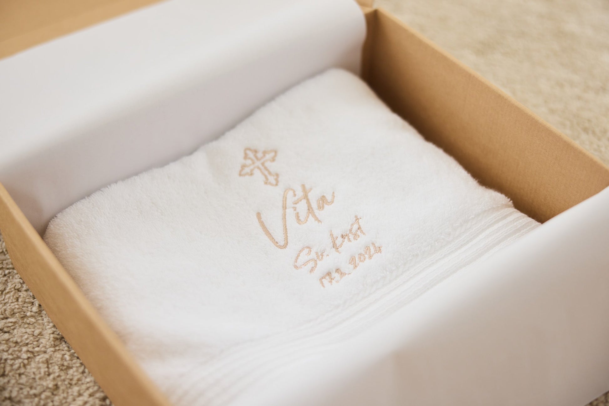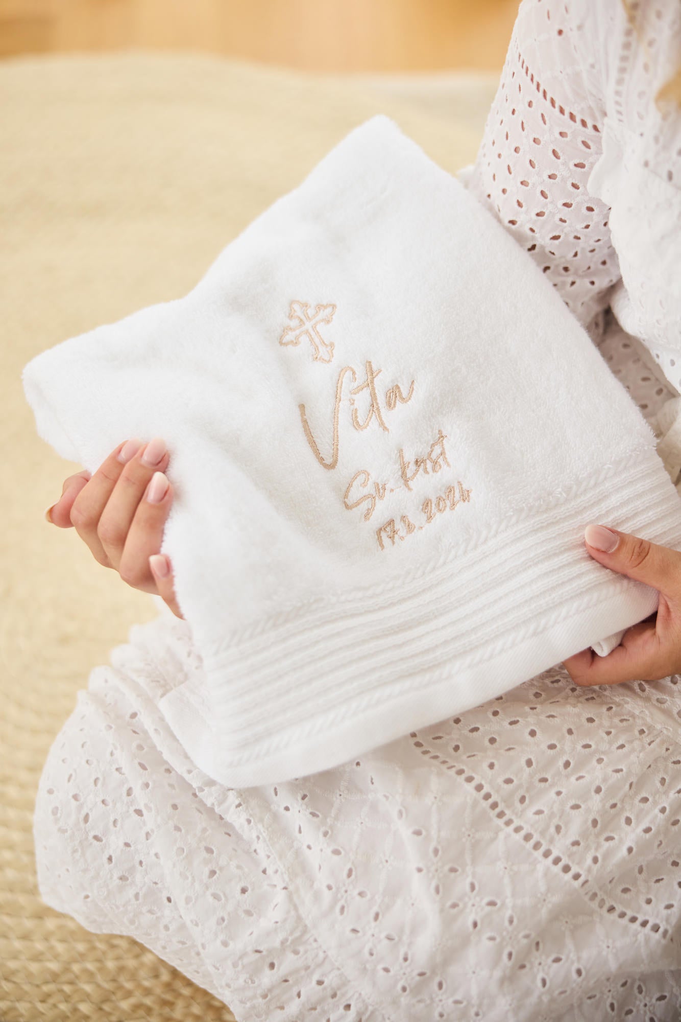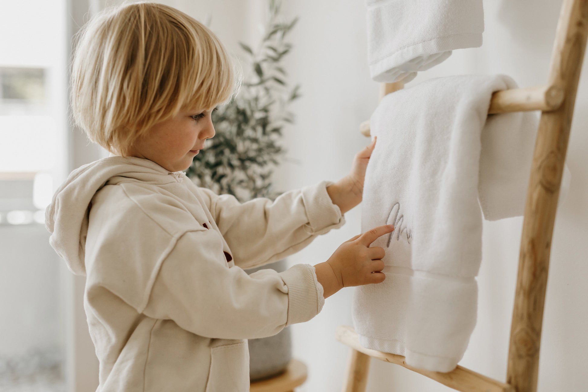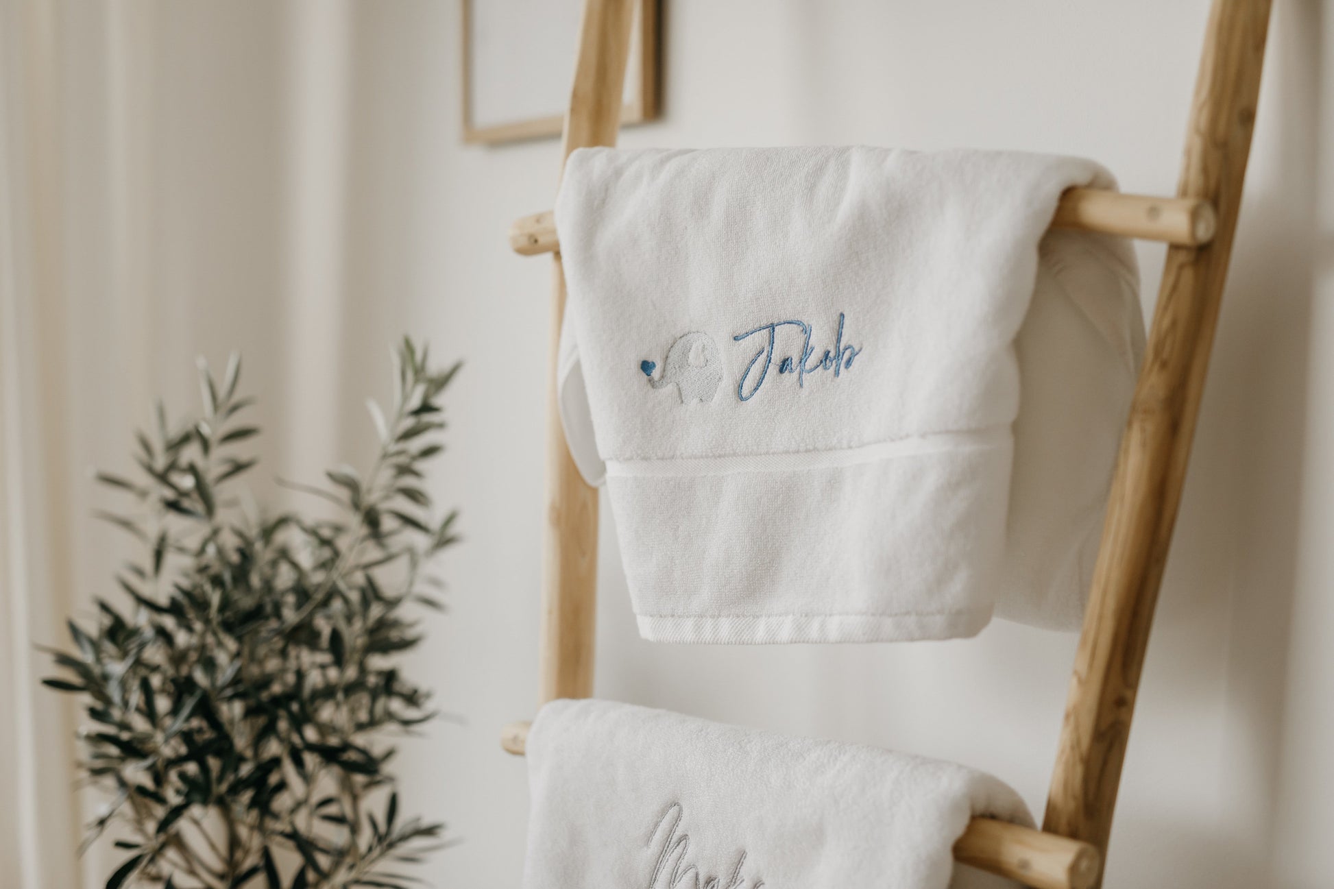 Le kdo si ne bi želel, da ga v kopalnici pričaka mehka brisačka z izvezenim imenom? Tako bodo tudi ostali člani družine vedeli, katera brisača je od vašega malčka.