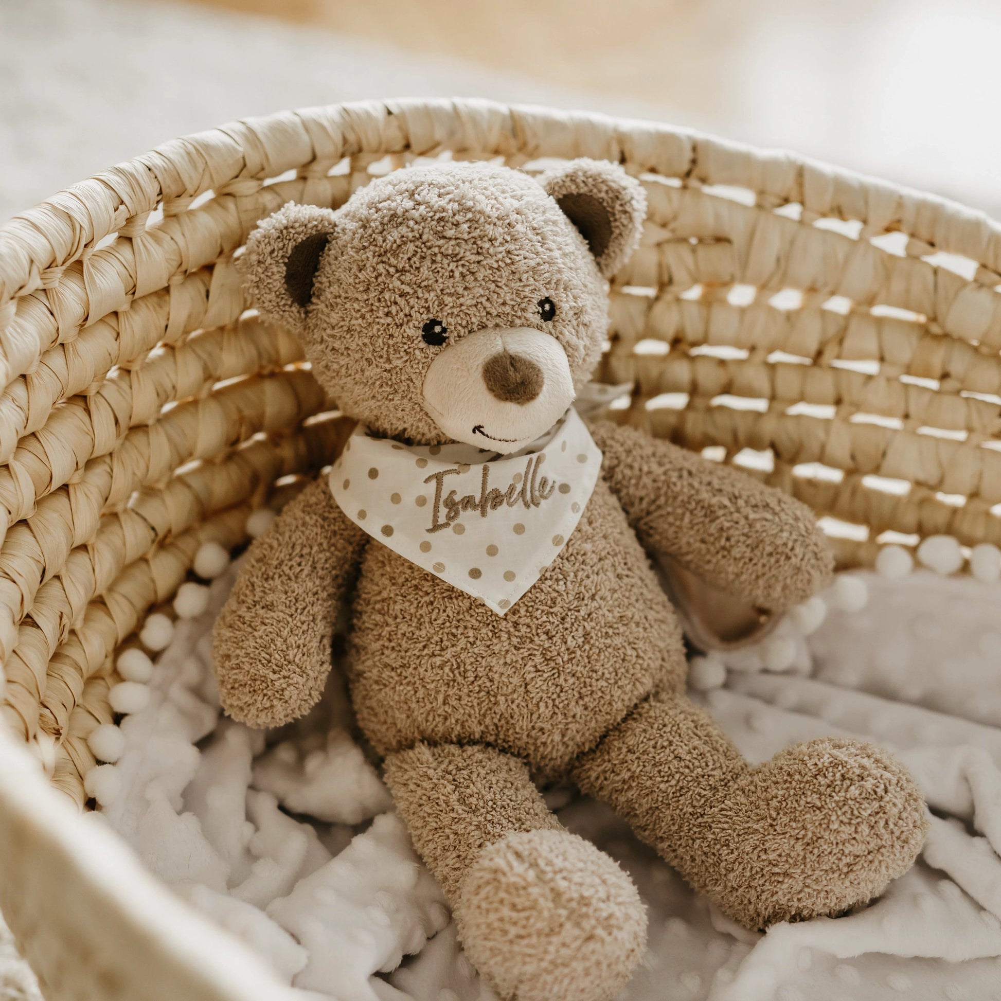 - Plišast medvedek: 100 % pliš, dimenzije: 35 cm