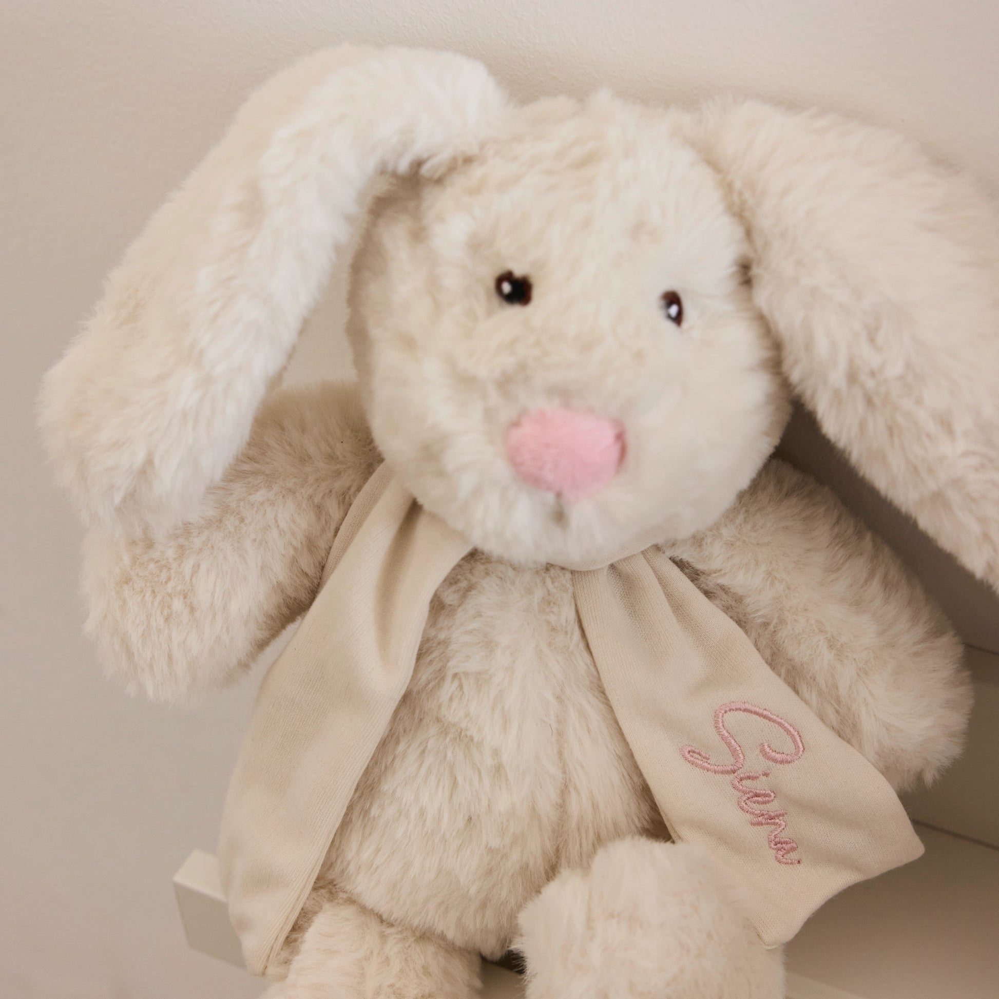 - zajčka iz recikliranega materiala z izvezenim imenom otroka na šalu