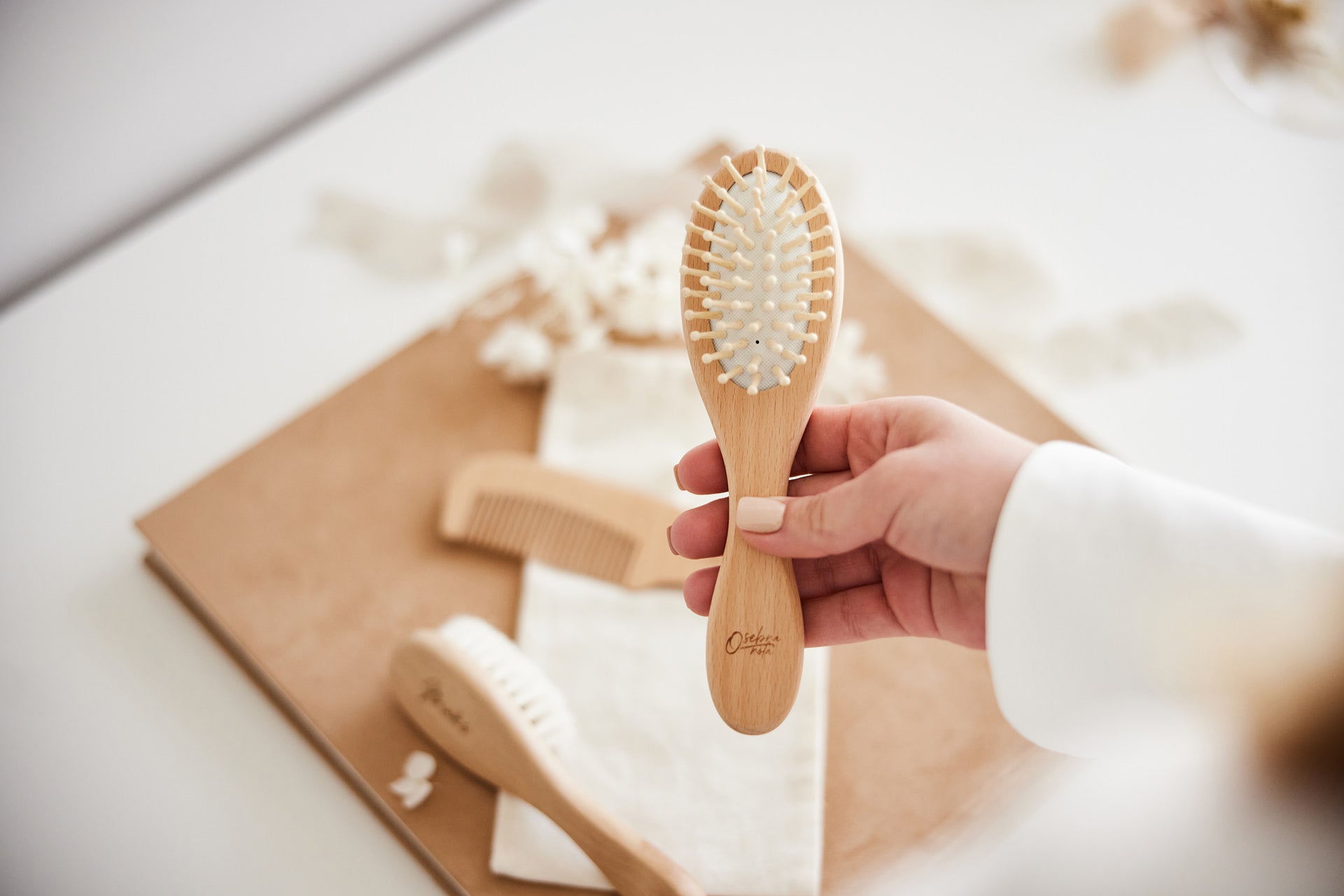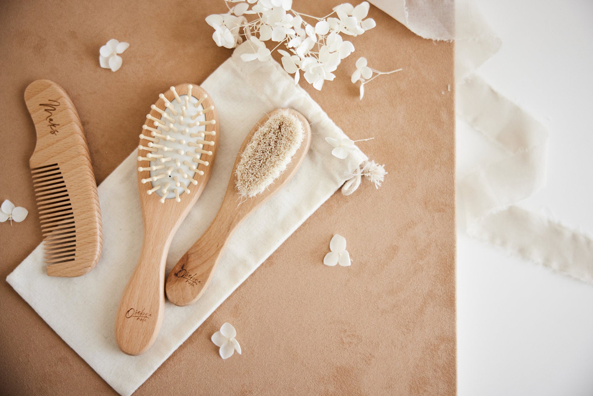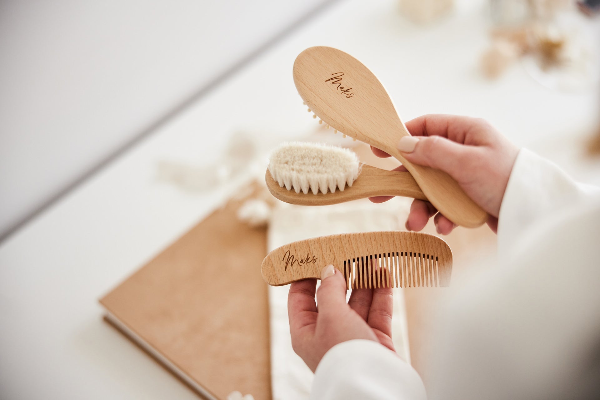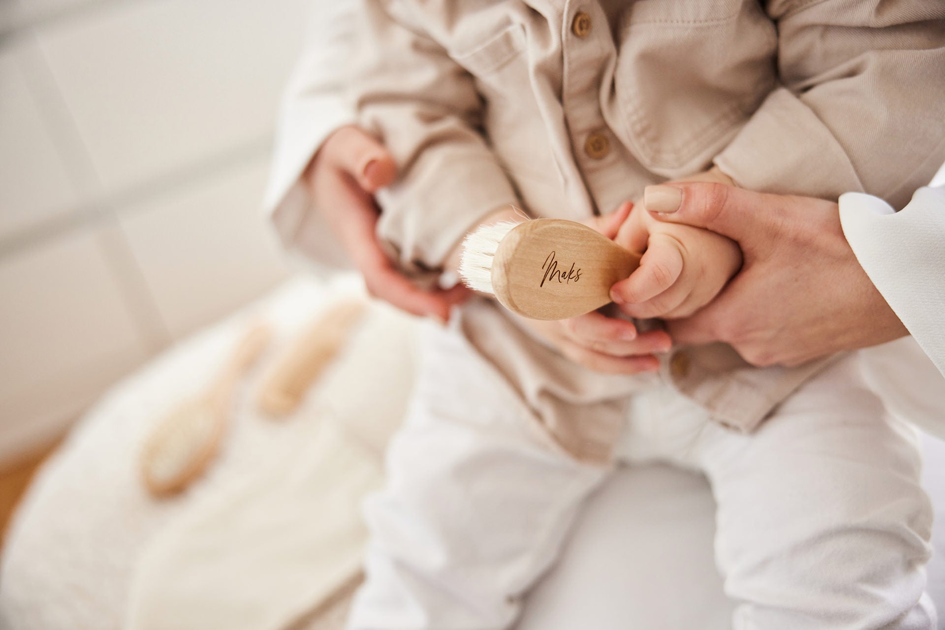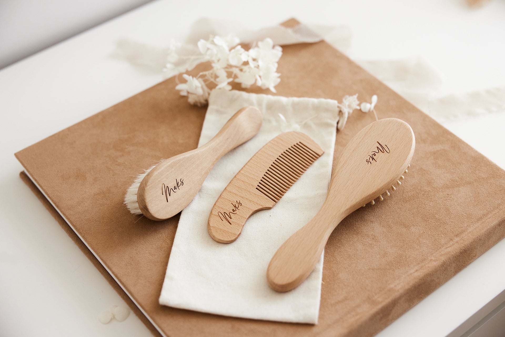 Minimalistični set za nego las, ki je lahko s personalizirano gravuro čudovito darilo ob rojstvu novorojenčka.