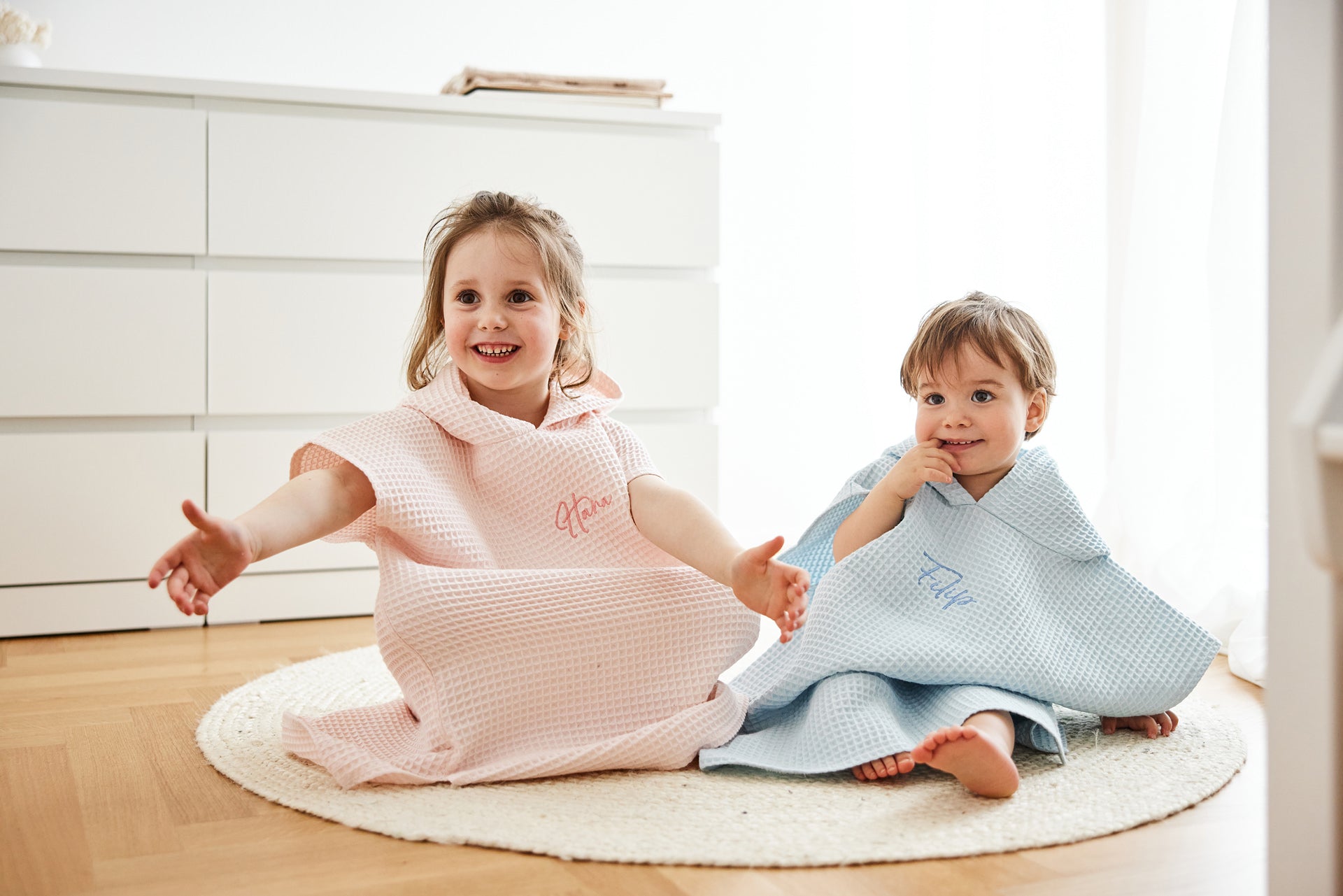 S pončo brisačo je to enostavno, saj jo preprosto potegnete malčku čez glavo, kmalu pa si jo bo znal obleči tudi sam.