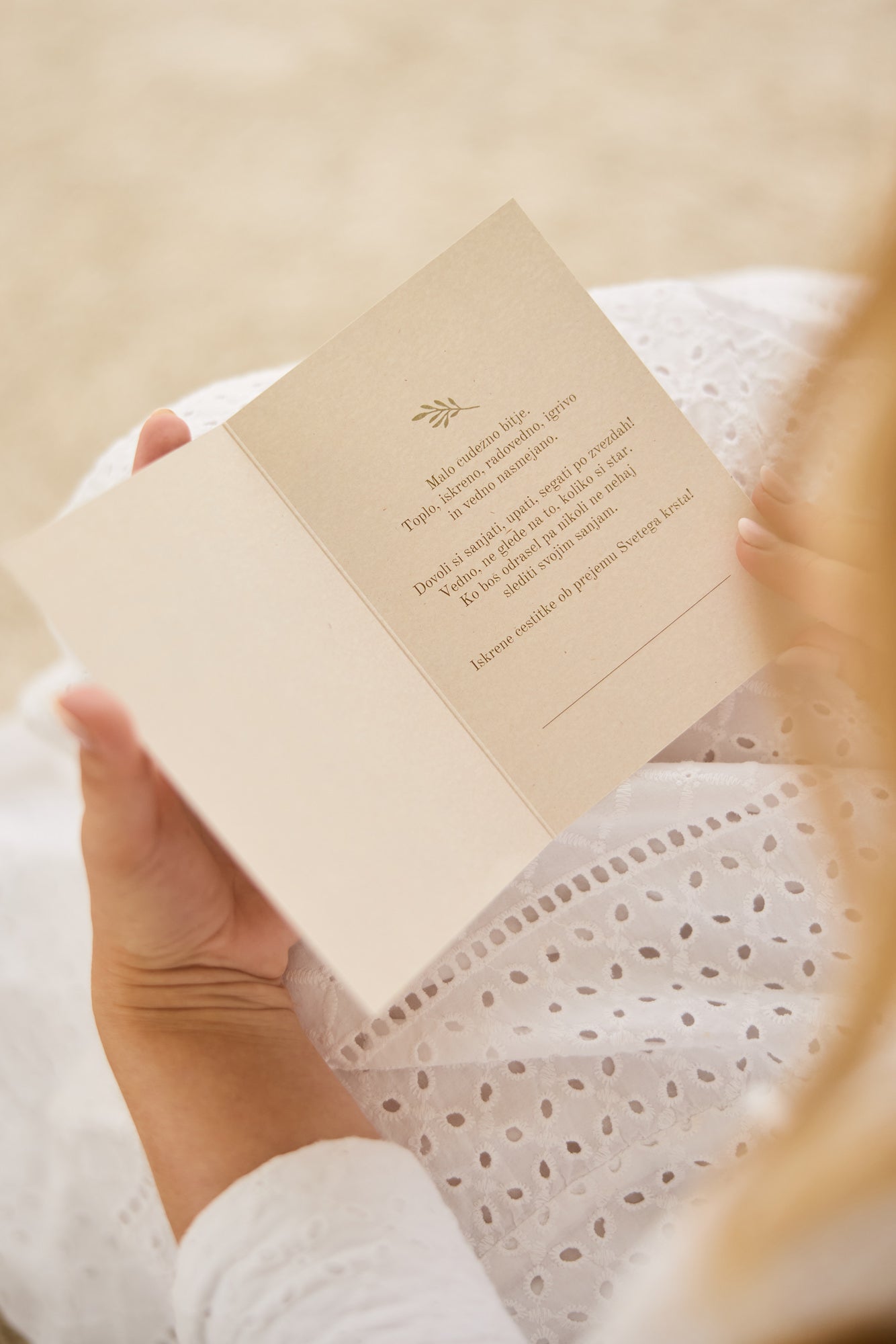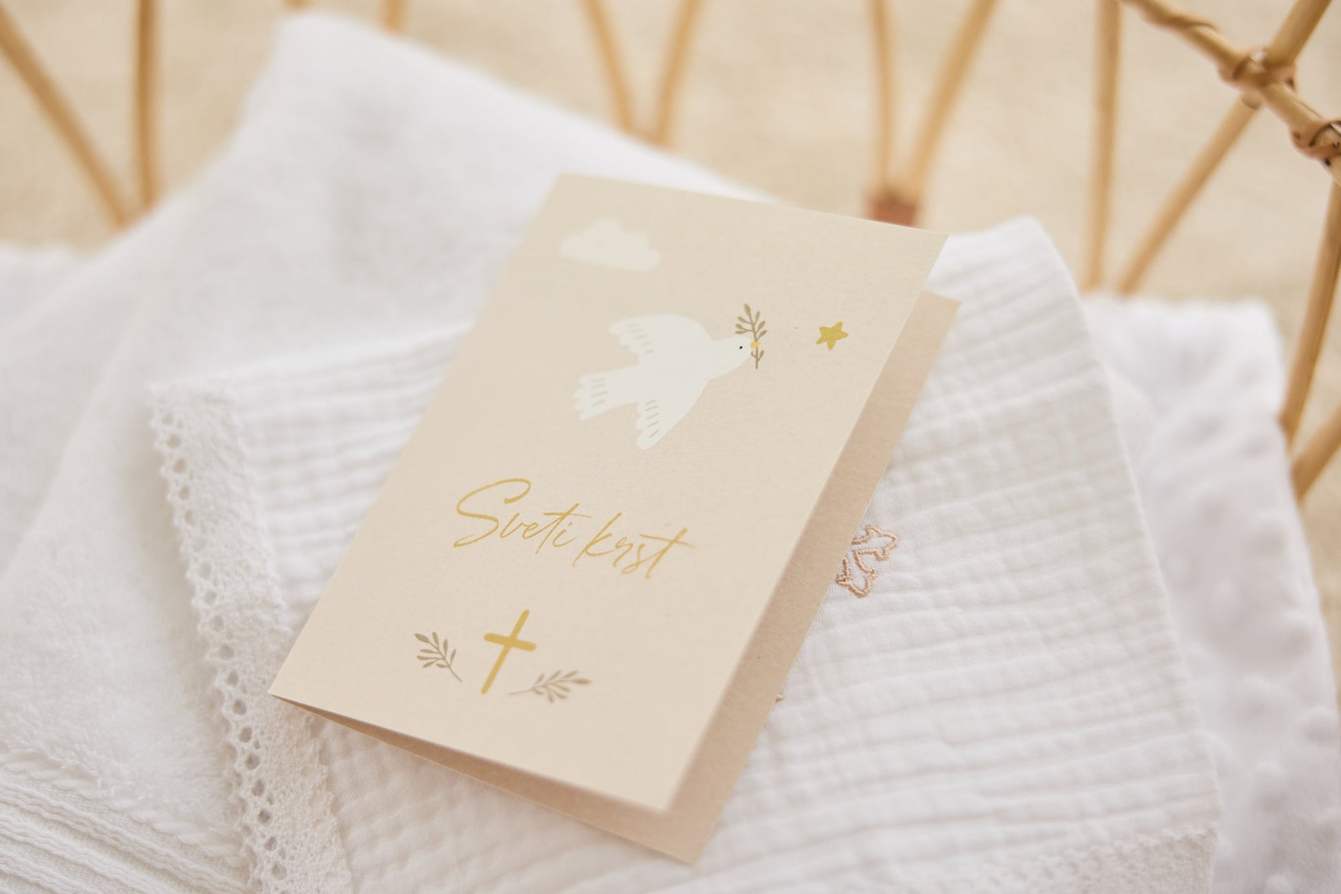 Prikupna in nežna voščilnica ob krstu otroka, ki bo dodala piko na i vašemu izbranemu darilu.