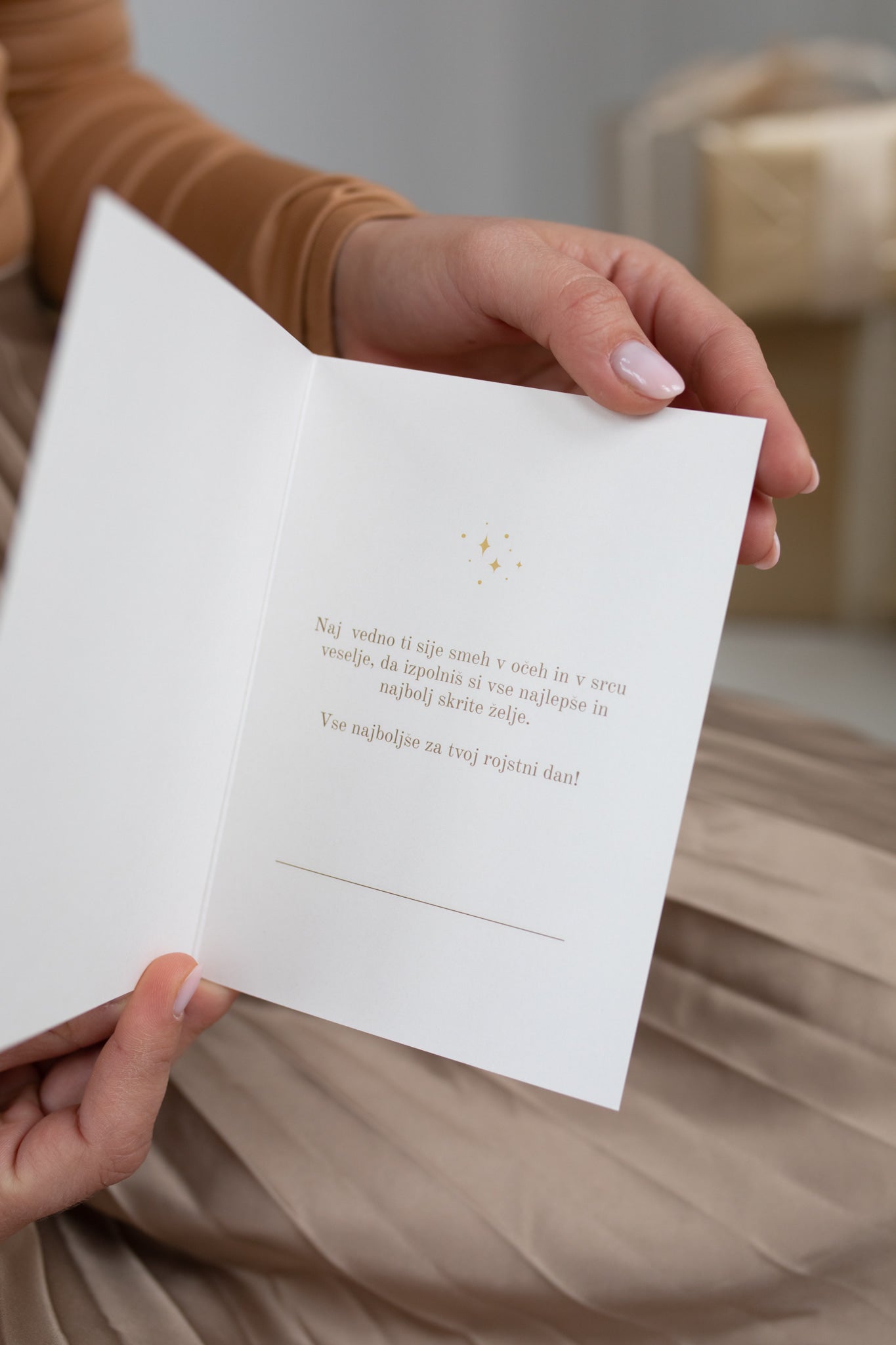 Prikupna in nežna voščilnica za rojstni dan, ki bo dodala piko na i vašemu izbranemu darilu.