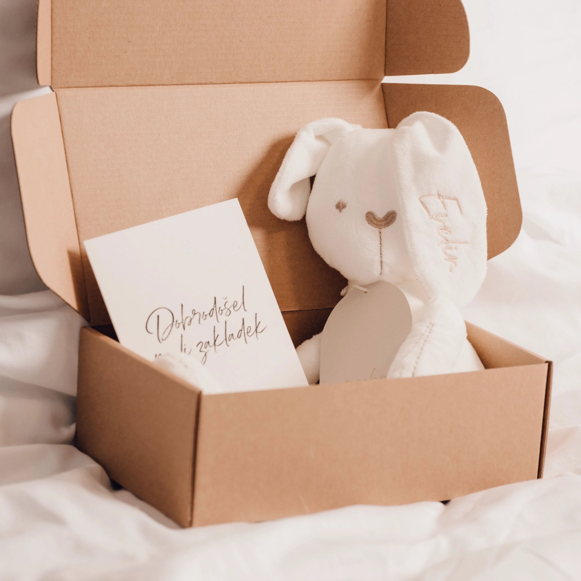 Varnostno opozorilo: Personalizirani zajček ni igrača, ampak je dekorativen izdelek s spominsko vrednostjo. Ni namenjen igri in ni primeren za otroke brez nadzora.