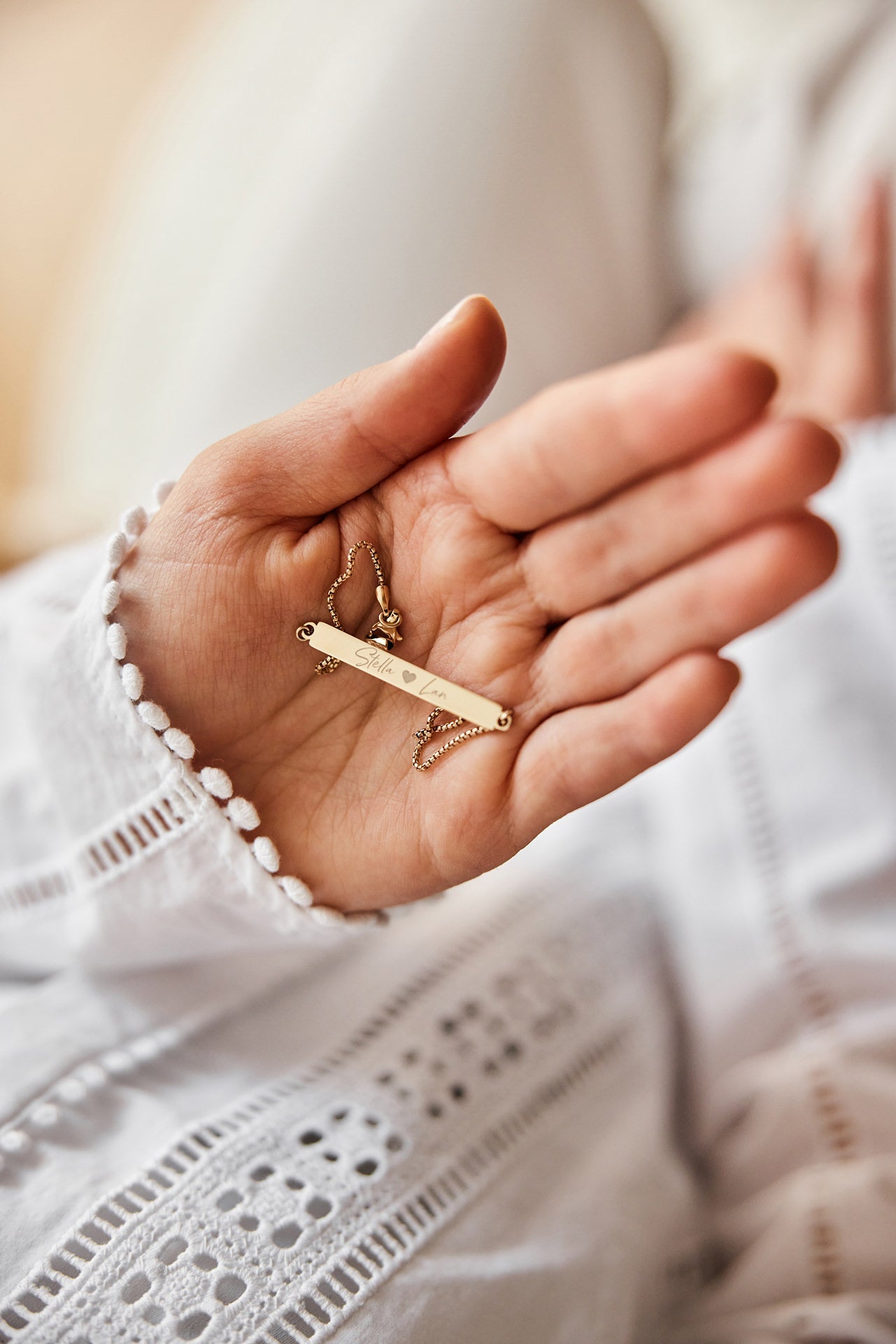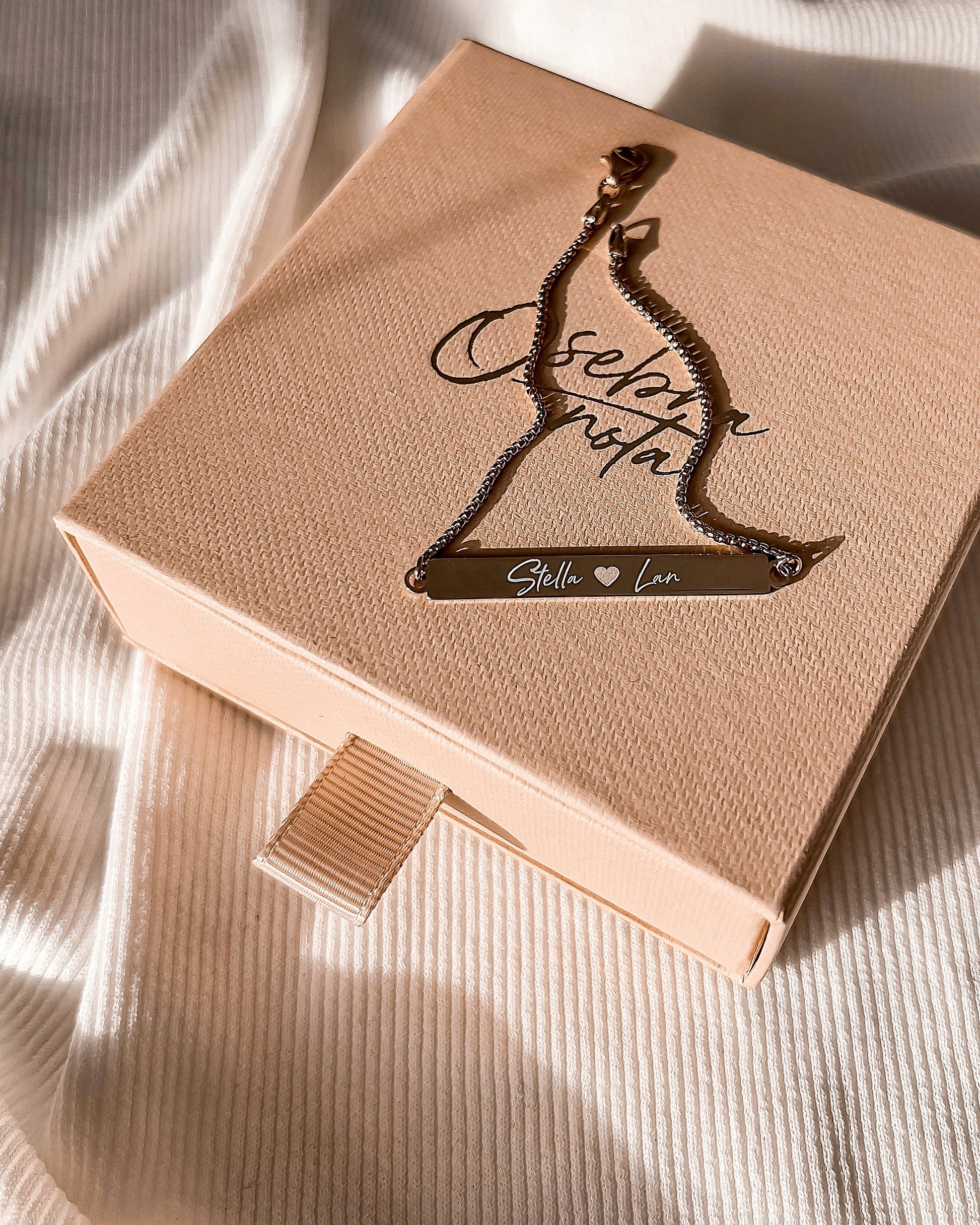 Personalizirana zapestnica s ploščico imena obdarovanca ali malčka, ki jo bo vsaka mamica nosila z največjim ponosom.